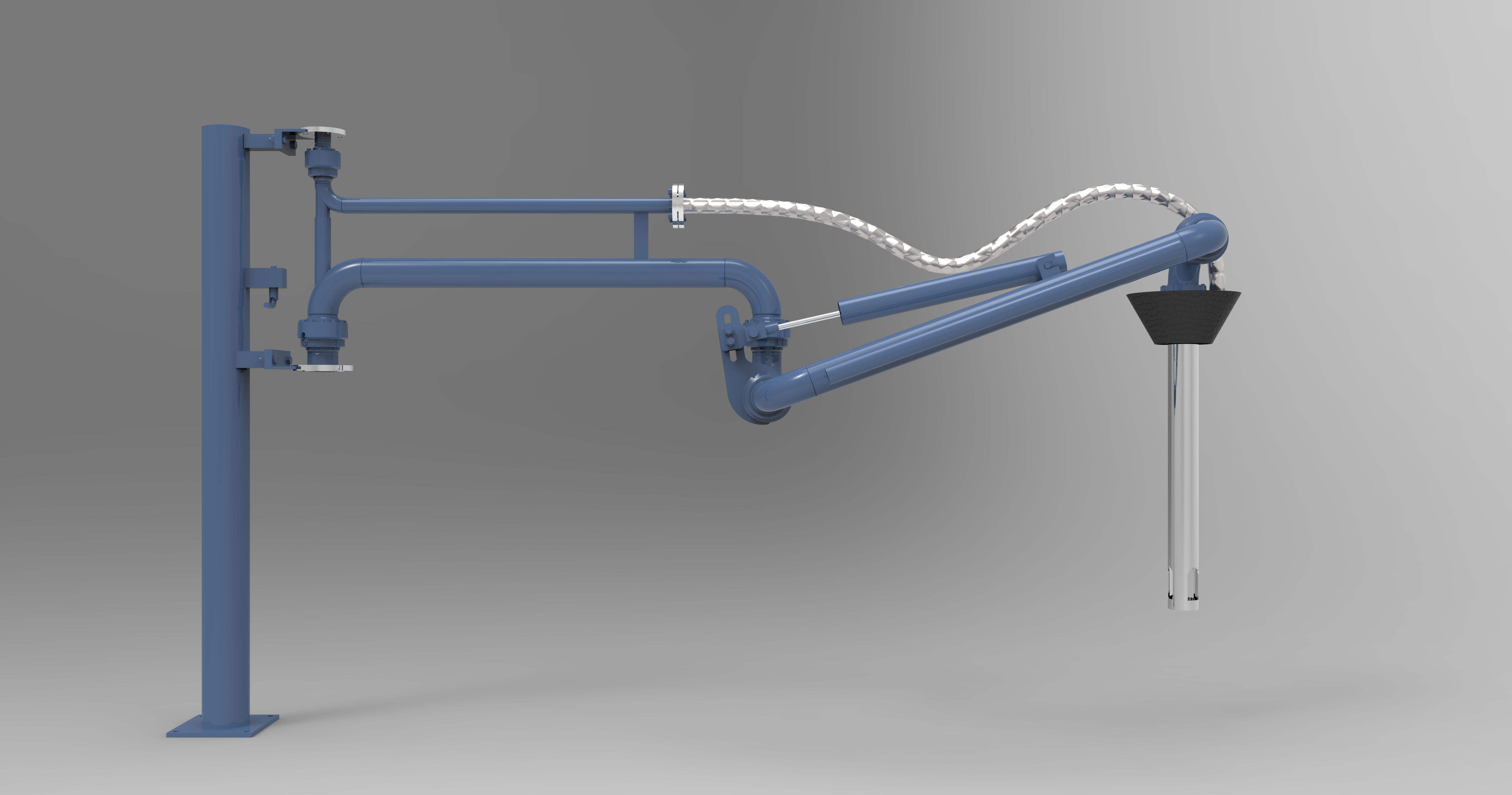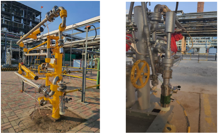 火車(chē)鶴管要求鶴管具有足夠的長(zhǎng)度及移動(dòng)空間(高度、水平距離),以保證實(shí)現(xiàn)列車(chē)進(jìn)入裝卸棧臺(tái)后達(dá)到不摘鉤對(duì)位、浸沒(méi)式裝油和卸油作業(yè)的要求,并滿(mǎn)足安全要求?;疖?chē)鶴管需要?dú)饷苄院?、輕便靈活、操作方便。